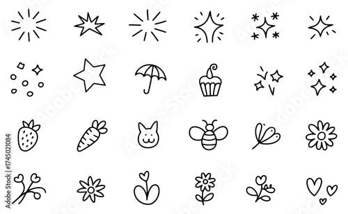 Collection of whimsical hand-drawn icons for creative projects and decorations