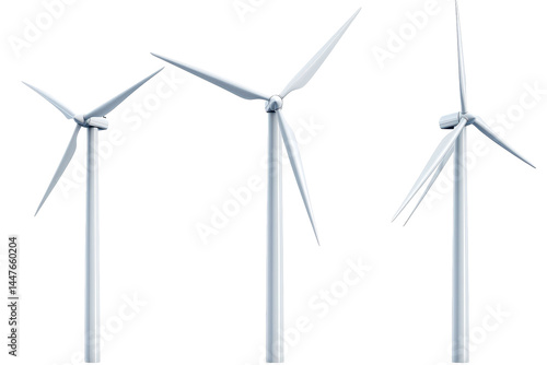 Collection of wind turbines in different styles shown in transparent PNG image with white background