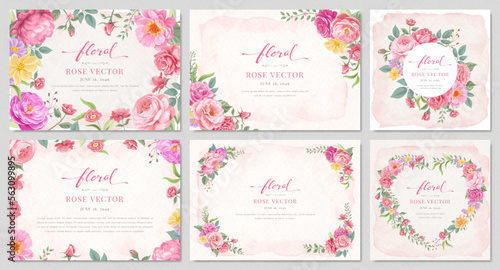 Collection set Beautiful Rose Flower and botanical leaf digital painted illustration
