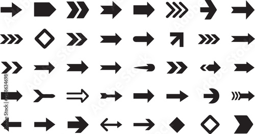 Collection Set of Arrow Icon Vector Set in Black and White with Various Styles and Directions
