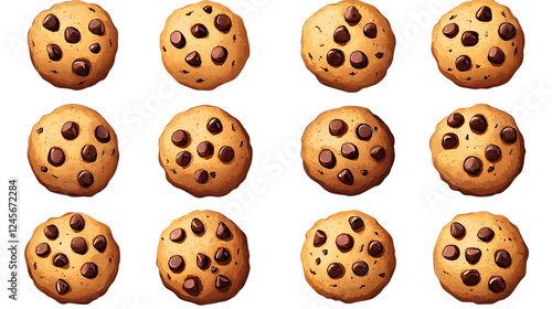 Collection set of chocolate chip cookies isolated on transparent or white background