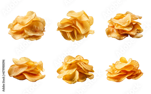 Collection set of crispy potato chips isolated on a transparent background, cut out