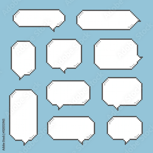 collection set of retro game 8bit pixel speech bubble balloon black and white color, flat design vector illustration