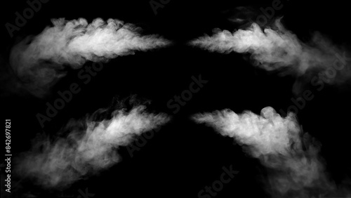 Collection set of white smoke moving on black background. Smoke clouds. Isolated abstract lines.