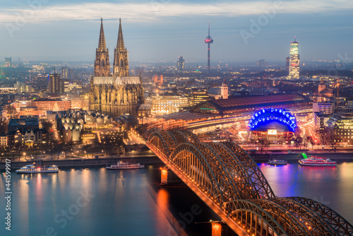 Cologne Cathedral and Hohenzollern Bridge in Cologne, Germany