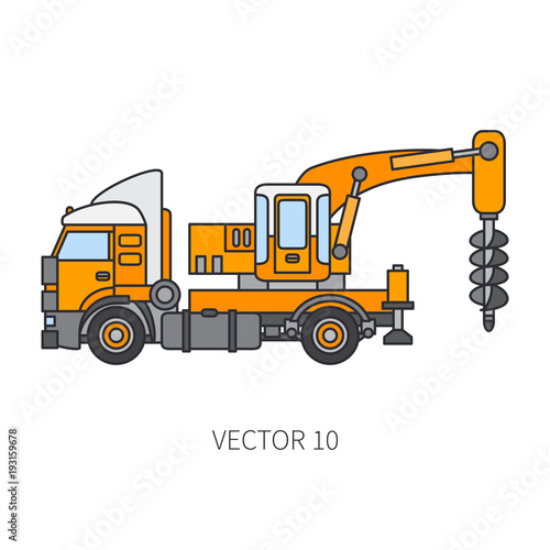 Color flat vector icon construction machinery truck boer, well. Industrial style. Corporate cargo delivery. Commercial transportation. Building. Business. Engineering. Diesel. Illustration for design.
