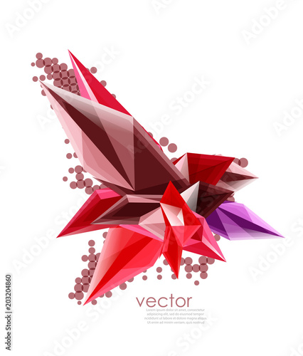Color glass crystals on white background, geometric abstract composition with glass gemstones and copyspace, background template