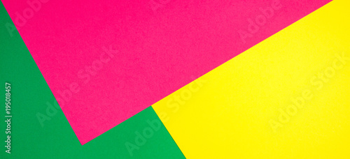 Color papers geometry flat composition banner background with yellow, green, and pink tones