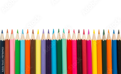 Color pencils,multicolored pencils isolated on white background with Clipping path.Beautiful color pencils copy space