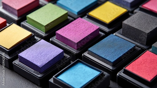Color Spectrum of Stamps: A vibrant collection of various colored stamps, presenting a dynamic assortment of hues for all your creative needs, inviting the viewers to unleash their inner artistry.