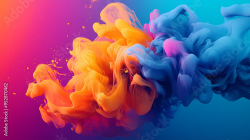 Color splashes complement minimalist designs, swirling ink with gradient textures in a modern abstract style. Minimalist. Illustration