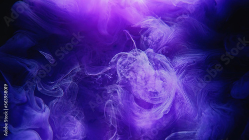 Color steam. Fume swirl. Vapor floating. Blue purple glowing smoke cloud texture paint water wave flow motion abstract background.