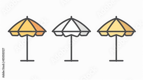 Colored Beach umbrellas, summer concept, umbrella icon on white background in outline style.