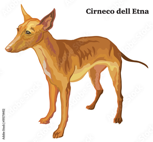Colored decorative standing portrait of dog Cirneco dell Etna vector illustration