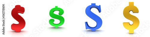 Colored Dollar $ signs red green blue yellow golden 3d symbols