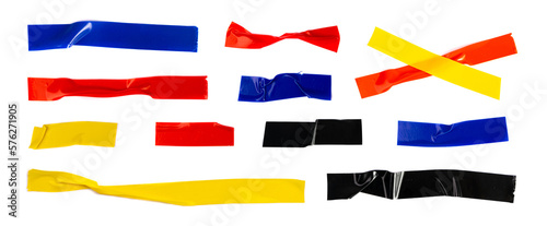 Colored Electrical Sticky Tapes, Adhesive Pieces Isolated, Plastic Duct Tape Strips, Colourful Adhesive Tapes