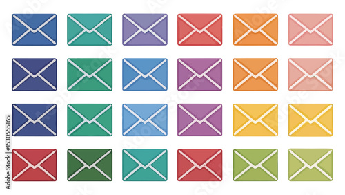 Colored Email Icon Set for Communication, Messaging, and Digital Correspondence