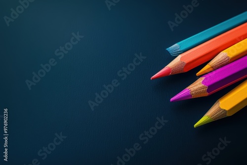 colored pencils on white background close-up Generative AI. Beautiful simple AI generated image