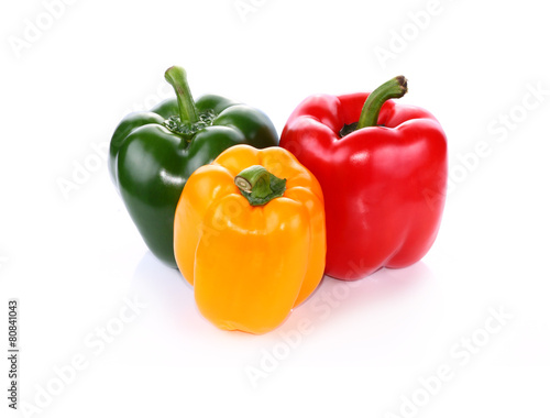 colored peppers over white background