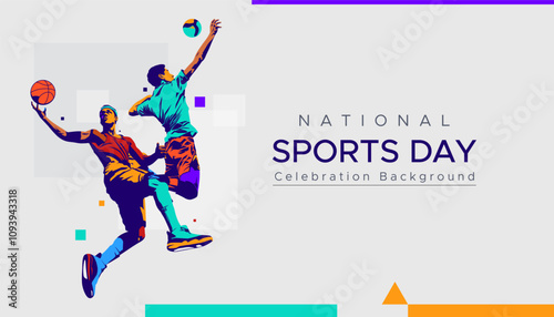 colored silhouettes of basketball and volleyball athletes, a design with a national sports celebration concept. celebration background is white. volleyball and basketball sports tournaments.