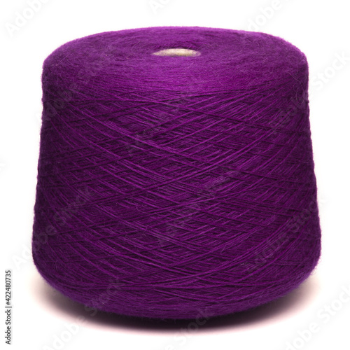 Colored yarn threads purple isolated