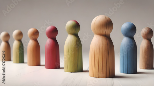 Colorful Wooden figure peg dolls. creative thinking and human resources, Recruitment employee concept AI generated image, ai