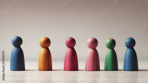 Colorful Wooden figure peg dolls. creative thinking and human resources, Recruitment employee concept AI generated image, ai