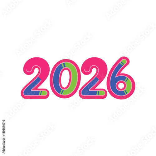 Colorful 2026 numbers new year celebration festive typography isolated on white background