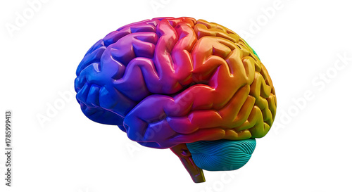 Colorful 3 D Rendered Human Brain with Cerebrum and Cerebellum, cutout, PNG isolated on white or transparent background