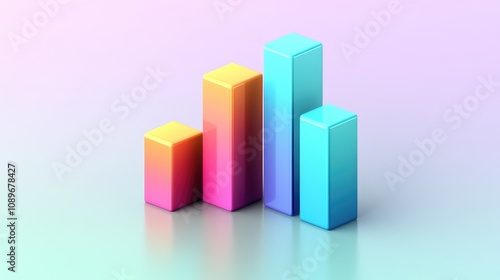 Colorful 3D Bar Graph with Gradient Tones Representing Positive Growth in Business and Finance, Ideal for Presentations and Marketing Materials
