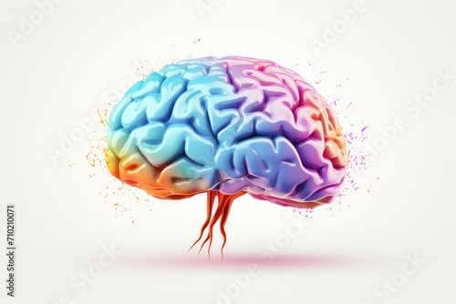 Colorful 3D Brain Axon Illustration Vector on White Background, Human Mind Creative Thinking, educational psychology science, cognitive neuroscience, learning colorful brain system, neurogenesis