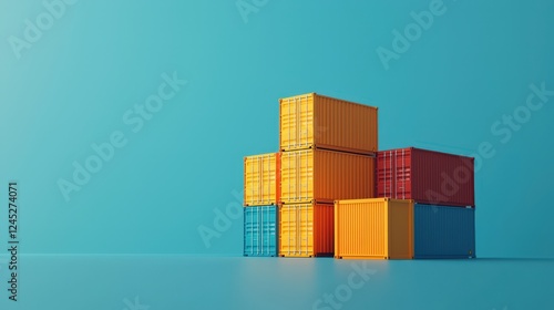 Colorful 3D Cargo Containers Stacked on Blue Background for Modern Shipping and Transportation Needs