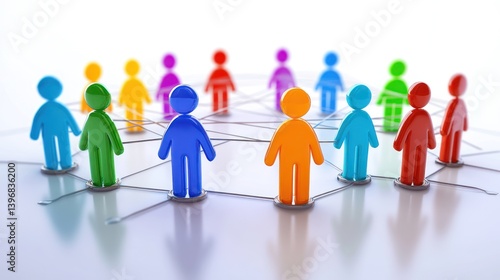 Colorful 3D figures interconnected, symbolizing network, community, or teamwork.