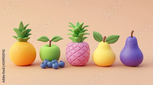 Colorful 3D fruit row, pastel background, healthy food concept, website banner