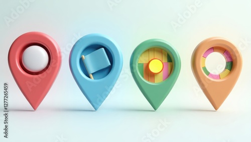 Colorful 3D Location Markers Navigation Map Pins App Icons Design Elements