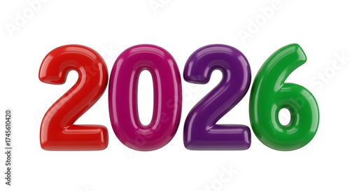 Colorful 3d numbers forming the year 2026 isolated on white background