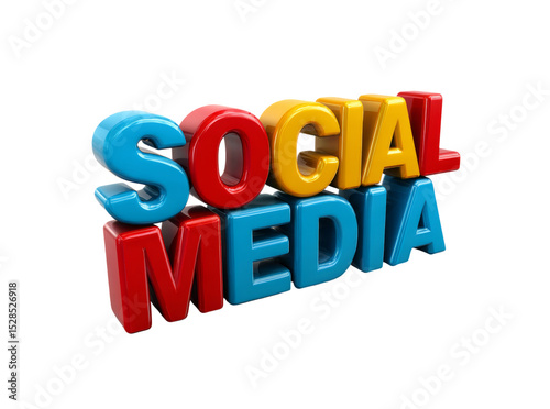 Colorful 3d social media text on black background, Isolated On Transparent Background