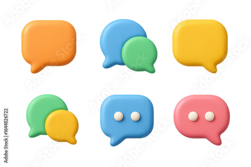 Colorful 3d speech bubbles with icons for social media and communication