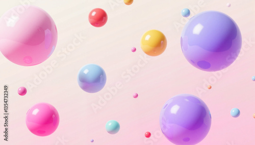 Colorful 3D spheres floating on pastel backdrop, modern playfulness