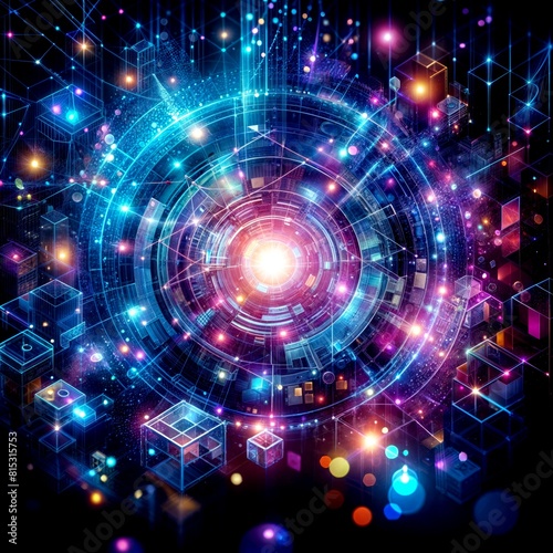 Colorful Abstract Background with Geometric Shapes and Bokeh