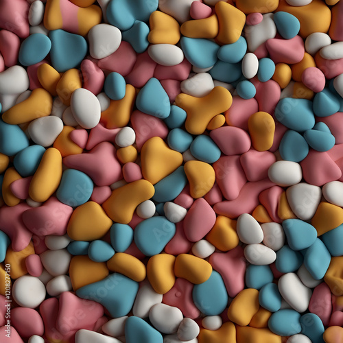 Colorful abstract background with playful rounded shapes in pink, blue, yellow, and white