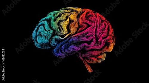 Colorful abstract brain illustration symbolizing artificial intelligence machine learning creativity and innovation in modern technology.