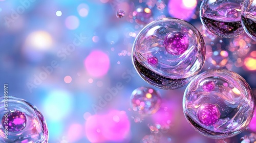 Colorful Abstract Bubbles with Shimmering Lights in Background