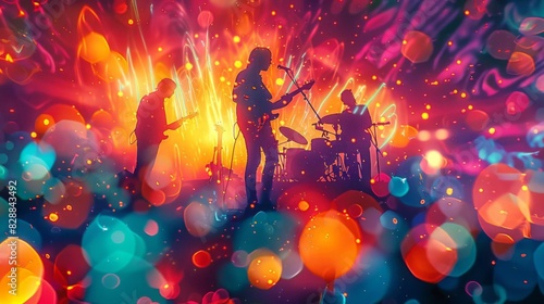 Colorful abstract concert with musicians and vibrant light trails, Psychedelic, Bright, Digital Illustration