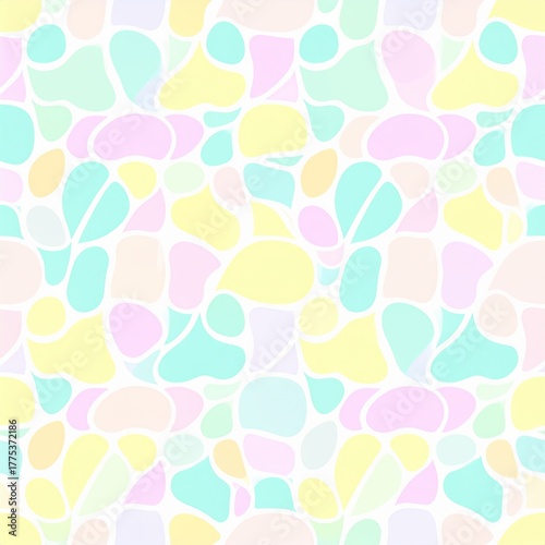 Colorful abstract design featuring various shapes and patterns in warm and cool tones on a white background