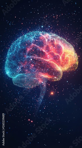 Colorful Abstract Digital Brain Shaped with Vibrant Lines Depicting Artificial Intelligence Concept and Technology Innovation at Night, Generative AI