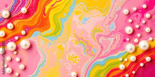 Colorful Abstract Fluid Art Background with Pearls