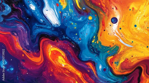 Colorful, abstract fluid art of swirling paint. The dynamic hues create a visually stunning, vibrant artwork