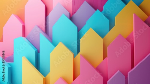 Colorful Abstract Geometric Background with Overlapping House Shapes in Pastel Tones