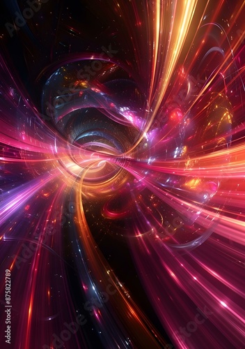 Colorful abstract glowing light trails in space